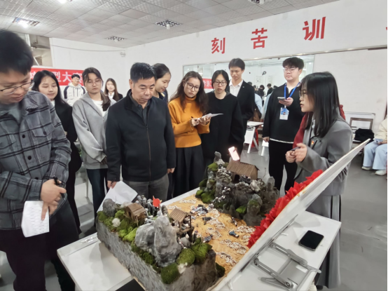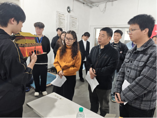 比赛现场气氛热烈,各参赛团队展示作品。选手们清晰阐述作品的设计灵感、红色内核、结构构思以及工艺细节,将“红色”建筑背后的历史故事、精神内涵与设计中的巧思娓娓道来。团队在反复打磨中沉淀心性、克服浮躁,培养了精益求精的做事态度,将“红色”建筑背后的历史故事、精神内涵,与寝室协作中的心理成长、匠心打磨中的心灵沉淀娓娓道来。